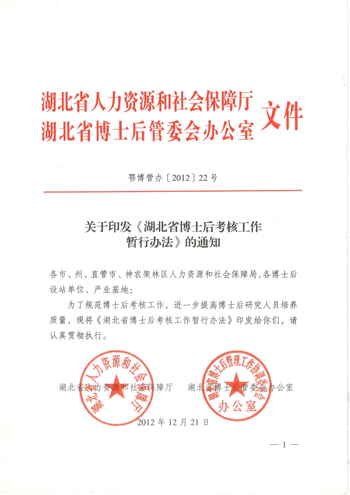 关于印发《湖北省博士后审核事情暂行步伐》的通知--鄂博管办〔2012〕22号